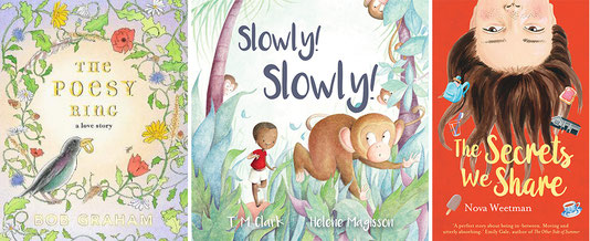 Our latest giveaway is a book prize pack - picture books The Poesy Ring by award-winning author-illustrator Bob Graham (thanks to our friends at Walker Books), and Slowly, Slowly by T.M. Clark and Helene Magisson (Wombat Books), plus a brilliant middle grade novel, The Secrets we Share by Nova Weetman (UQP).
