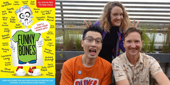 This episode, we have a HUGE prize pack to give away thanks to Allen & Unwin. This massive pack includes Funny Bones, the enourmous brick-sized anthology put together by Kate & Jol Temple and friend of the podcast Oliver Phommavanh, plus I See, I See by Robert Henderson and Paddy T and the Time Travelling Trampoline written by Adam France and illustrated by Zahra Zainal.