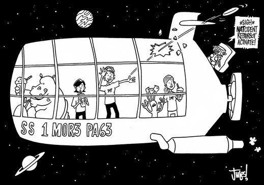 “Oh no! If the Alien bird breaks the engine we won’t get back home” said Captain Amy.