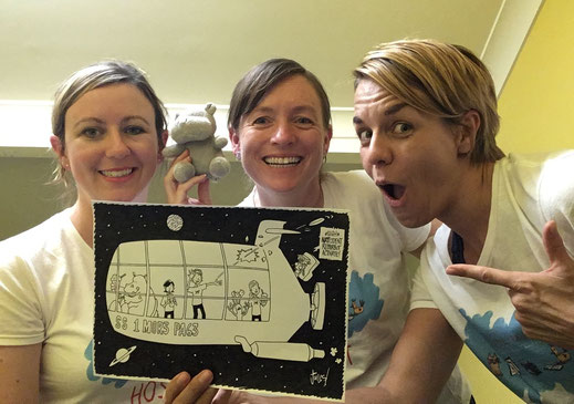 The next day Captain Amy got a call from the news channel inviting them to go talk about how they survived in space.