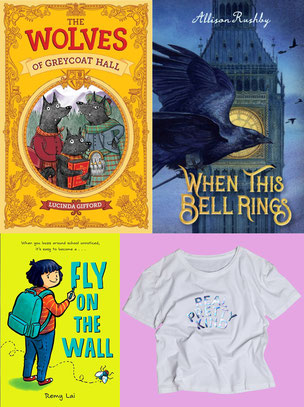 You can win a JF/MG book pack consisting of: The Wolves of Greycoat Hall by Lucinda Gifford, Pie in the Sky by Remy Lai and When this Bell Rings by Allison Rushby PLUS a Blush Star Rainbow Sparkle t-shirt from Real Pretty Kind.