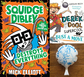 This episode we’re giving away an awesomely gross prize pack, including special guest, Mick Elliott’s latest book, Squidge Dibley Destroys Everything, plus Adrian Beck’s brand new book, Derek Dool Supercool: Bust A Move and of course, a bonus whoopee cushion!
