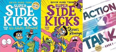 This episode we have a ripper Graphic Novel prize pack to give away! That’s right, strap in, because not only do we have both of Gavin Aung Than’s first two Super Sidekicks: No Adults Allowed and Ocean’s Revenge but also a signed copy of Mike Barry’s first graphic novel, Action Tank: Book 1. More illustrated action than you can throw a stick at!