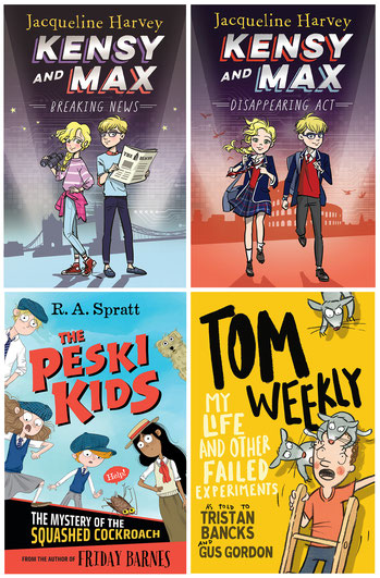 Thanks to Penguin Random House, we have a really exciting book pack to giveaway. It includes Kensy and Max: Breaking News and the second book, Disappearing Act. Plus RA Spratt’s The Peski Kids and the Mystery of the Squashed Cockroach as well as Tom Weekly: My Life and other Failed Experiments by Tristan Bancks.